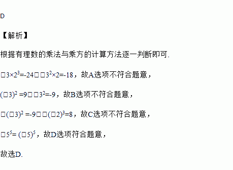 A. -3×23 与-32×2 B. (-3)2 与-32