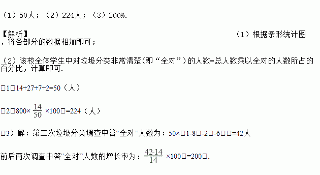 (2)若该校共有800名学生,则估计该校全体学生中对垃圾分类非常清楚(即“全对”)的人数有多少?