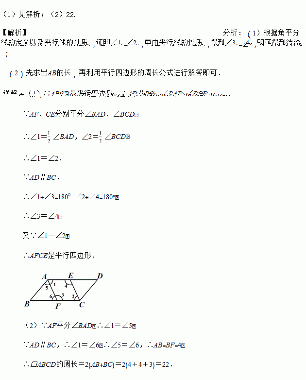 (2)若BF=4,FC=3,求□ABCD的周长.