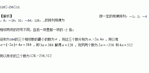 ―64,128,…,其中某三个相邻数之和为384,这三个数分别是___________________.