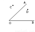 如图,校园有两条路OA、OB,在交叉口附近有两块宣传牌C、D,学校准备在这里安装一盏路灯,要求灯柱的位置P离两块宣传牌一样远,并且到两条路的距离也一样远,请你用尺规作出灯柱的位置点P。(请保留作图痕迹)