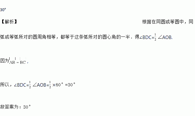 如图,已知BD是⊙O直径,点A、C在⊙O上,,∠AOB=60°,则∠BDC的度数是________