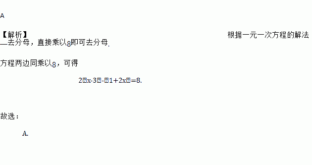A. 2(x-3)-(1+2x)=8 B. 2(x-3)-1+2x=8