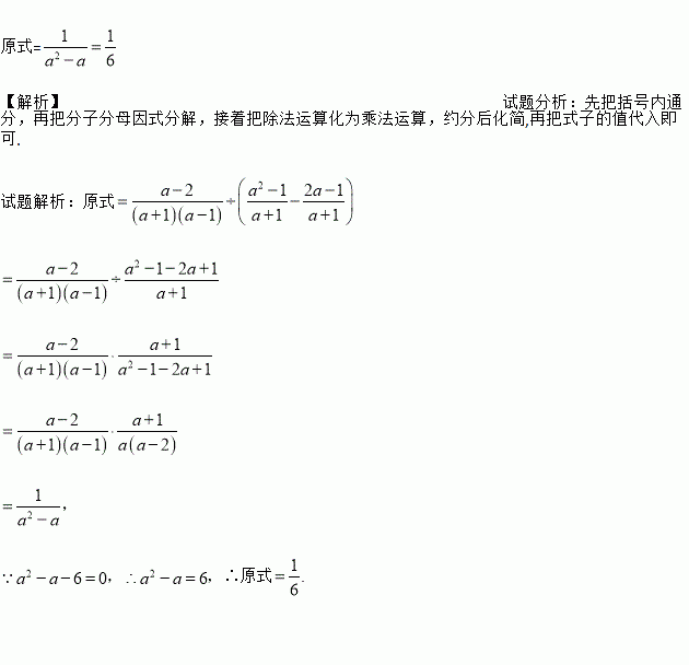 先化简,再求值: ,其中a2﹣a﹣6=0.