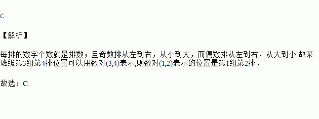 某班级第3组第4排的位置可以用数对(3,4)表示,则数对(1,2)表示的位置是( )
