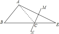 分析:首先连接AC,由AE的垂直平分线MN交BE于点C,可得AC=EC,又由AB+BC=BE,易证得AB=AC,然后由等腰三角形的性质与三角形内角和定理,求得∠BAE=∠BAC+∠CAE=180°-4∠E+∠E=105°,继而求得答案.
