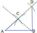 (2)画线段AB,分别以点A、B为圆心,以AB的长为半径画弧,两弧相交于点C,连结AC;再以点C为圆心,以AC长为半径画弧,交AC的延长线于D,连结DB.则△ABD就是直角三角形.