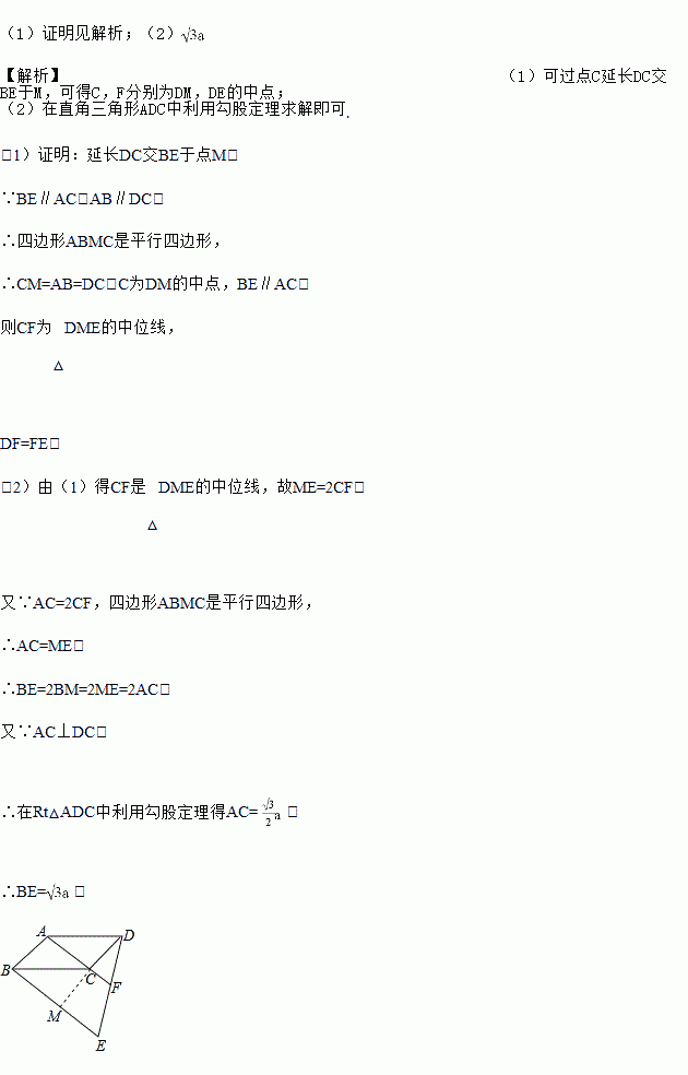 (2)若AC=2CF,∠ADC=60°,AC⊥DC,求BE的长.