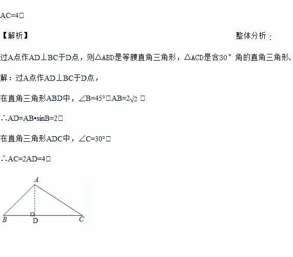 在△ABC中,∠B=45°,∠C=30°,若AB=2,求AC的长.