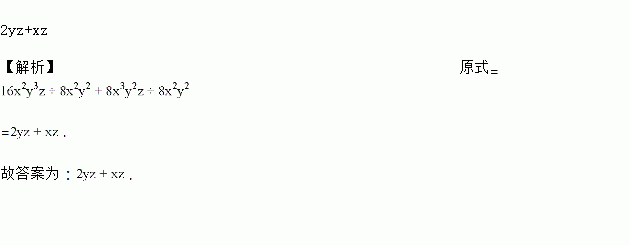 计算:(16x2y3z+8x3y2z)÷8x2y2=__________.
