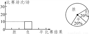 记录某足球队全年比赛结果(“胜”、“负”、“平”)的条形统计图和扇形统计图(不完整)如下: