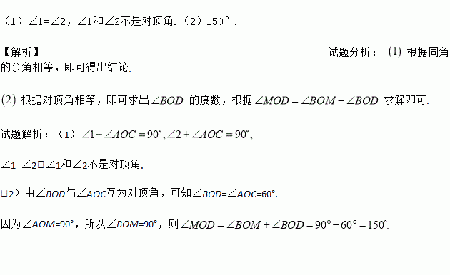 (1)∠1和∠2相等吗?∠1和∠2是对顶角吗?