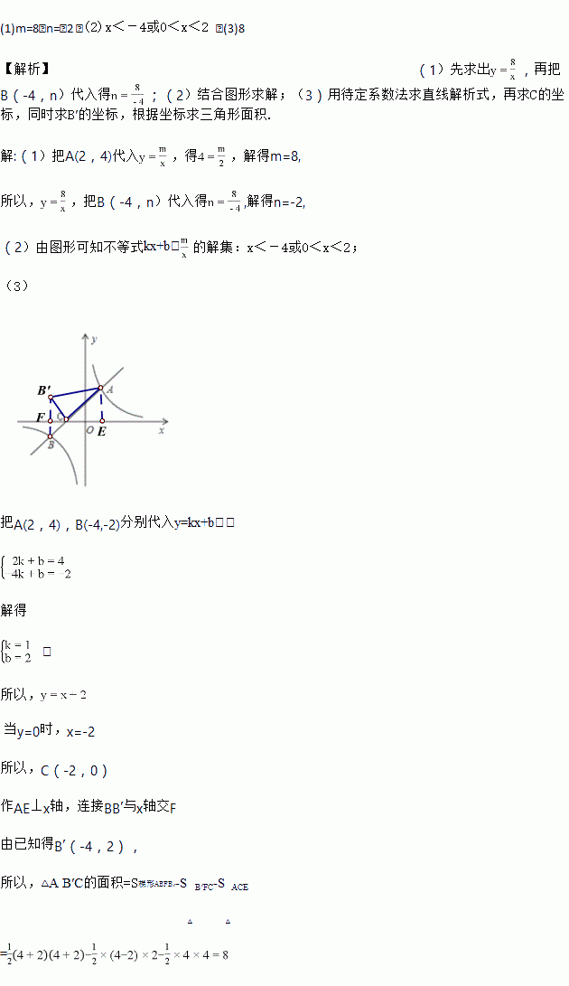的图像交于A(2,4),B(-4,n)两点,交x轴于点C.