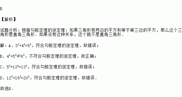 A.3,4,5 B.4,5,6 C.5,12,13 D.12,16,20