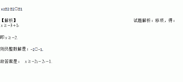 不等式x﹣1≥﹣3的解集为________,其中不等式的负整数解为________.