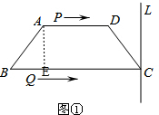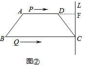 (2)首先延长AD交直线L于点F,根据路程÷速度=时间,用AF的长度除以直线L、点P的速度之和,求出t为何值时,直线L与点P相遇;然后根据路程÷速度=时间,用BC的长度除以直线L、点Q的速度之和,求出t为何值时,直线L与点Q相遇即可.