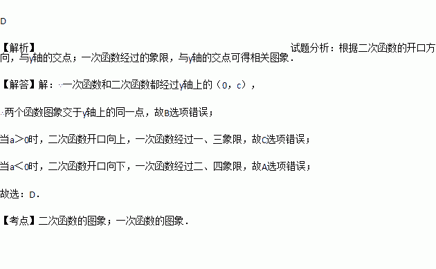 在同一直角坐标系中,一次函数y=ax+c和二次函数y=ax2+c的图象大致为( )
