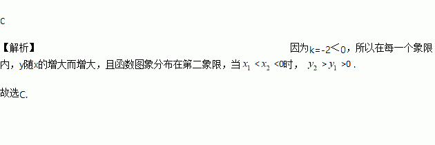 设A(),B ( )是反比例函数图像上的两点,若<<0则与 之间的关系是( )