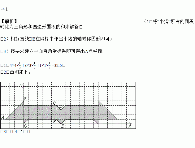 (2)在上面的方格纸中作出“小猪”关于直线DE对称的图案(只画图,不写作法);