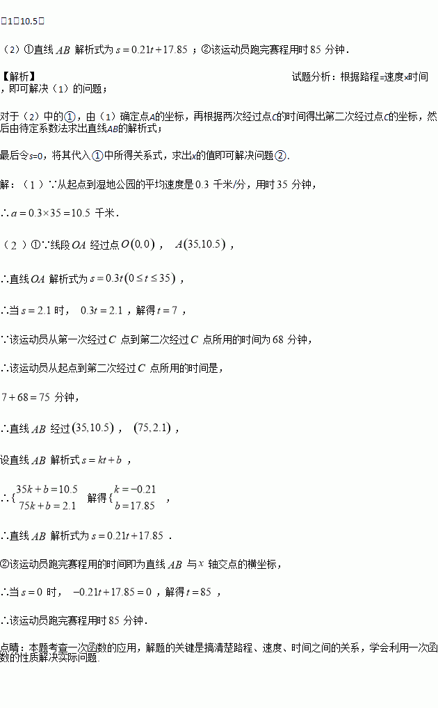 (时间)之间的函数关系如图所示,其中从起点到湿地公园的平均速度是