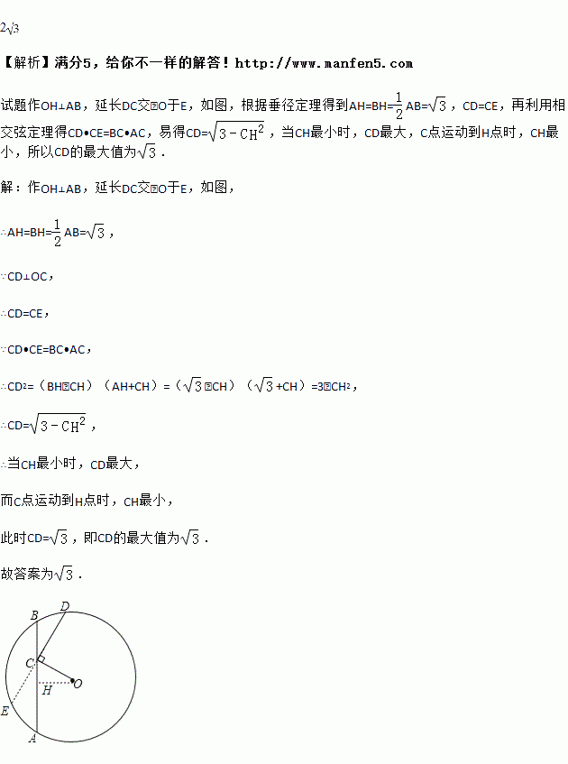 ,连接OC,CD⊥OC交⊙O于点D.则CD的最大值为__________.
