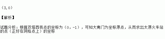 如图是利用网格画出的太原市地铁1,2,3号线路部分规划示意图.若建立适当的平面直角坐标系,表示双塔西街点的坐标为(0,-1),表示桃园路的点的坐标为(-1,0),则表示太原火车站的点(正好在网格点上)的坐标是 .