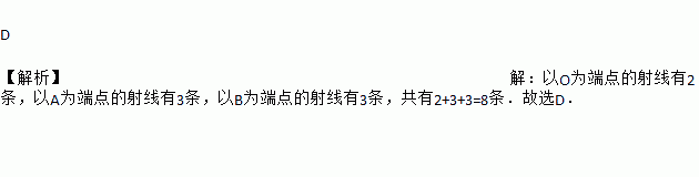 D 【解析】【解析】 以O为端点的射线有2条,以A为端点的射线有3条,以B为端点的射线有3条,共有2+3+3=8条.故选D.