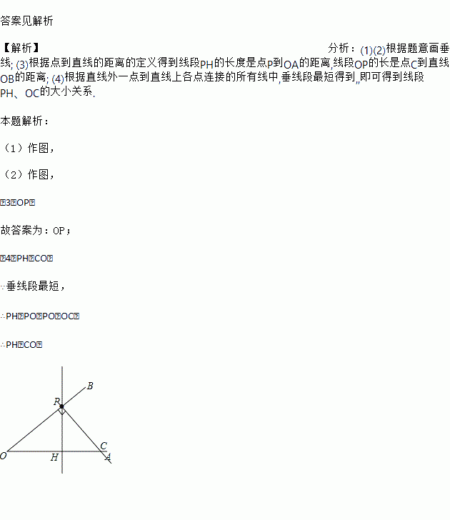 (1)过点P画OA的垂线,垂足为H;