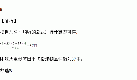 某快递公司快递员张海六月第三周投放快递物品件数为:有1天是41件,有2天是35件,有4天是37件,这周里张海日平均投递物品件数为( )