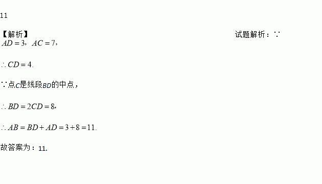 如图,C是线段BD的中点,AD=3,AC=7,则AB的长等于________