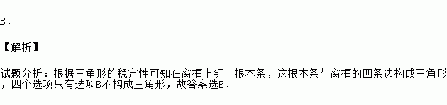 如图,工人师傅做了一个长方形窗框ABCD,E、F、G、H分别是四条边上的点,为了使它稳固,需要在窗框上钉一根木条,这根木条不应钉在 ( )
