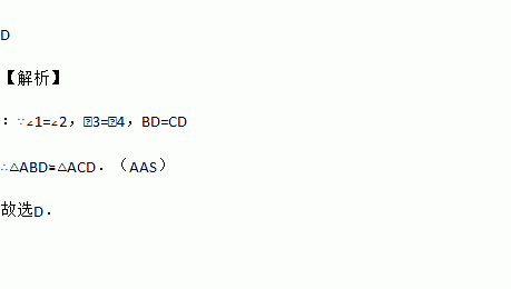 如图所示,∠1=∠2,∠3=∠4,若证得BD=CD,则所用的判定两三角形全等的依据是( )