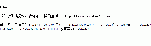 如图,中,于D,要使,若根据“”判定,还需要加条件__________