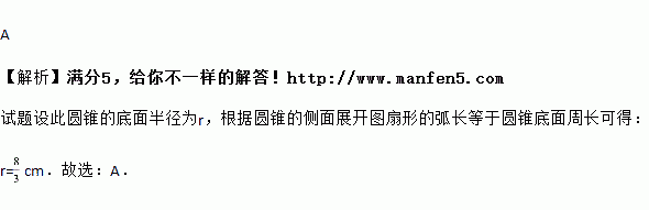 一个圆锥的侧面展开图形是半径为8cm,圆心角为120°的扇形,则此圆锥的底面半径为( )
