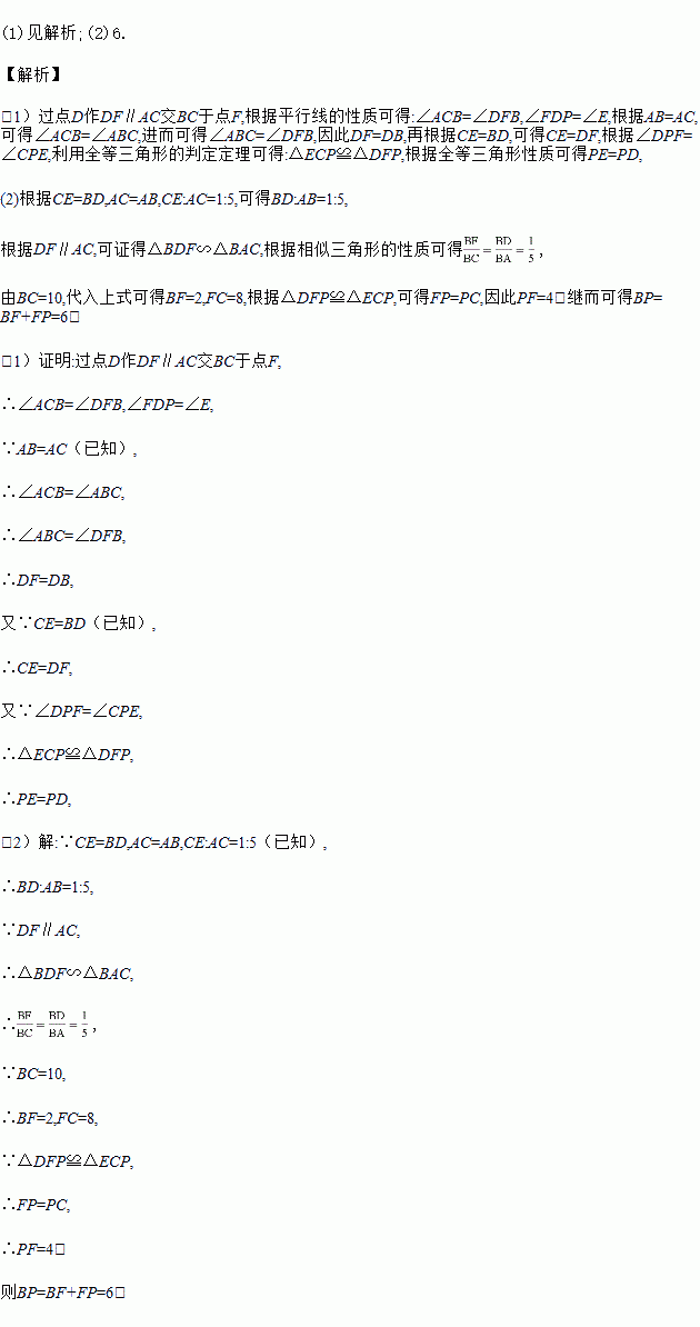 (2)若CE:AC=1:5,BC=10,求BP的长.