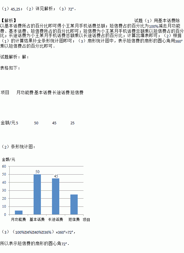 (5分)(2015春•鞍山期末)小王某月手机话费中的各项费用统计情况见下列图表,请你根据图表信息完成下列各题: