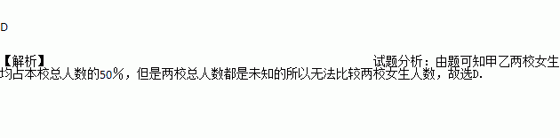 甲校女生占全校总人数的50%,乙校男生占全校总人数的50%,比较两校女生人数( )