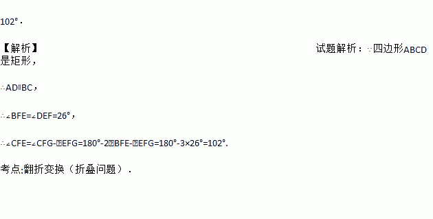 如图a是长方形纸带,∠DEF=26°,将纸带沿EF折叠成图b,再沿BF折叠成图c,则图c中的∠CFE的度数是 .