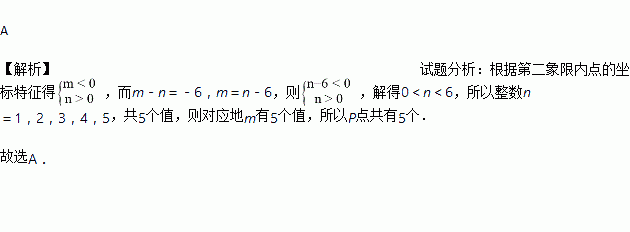 已知点P在第二象限,有序数对(m,n)中的整数m,n满足m-n=-6,则符合条件的点P共有( )