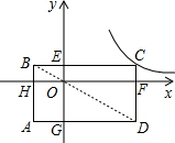 点评:本题考查了反比例函数k的几何意义、矩形的性质、一元二次方程的解法,关键是判断出S四边形CEOF=S四边形HAGO.