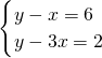 分析:根据题意可知,本题中的相等关系是“十位数字与个位数字之差等于6”和“个位数字比十位数字的3倍大2”,列方程组求解即可.