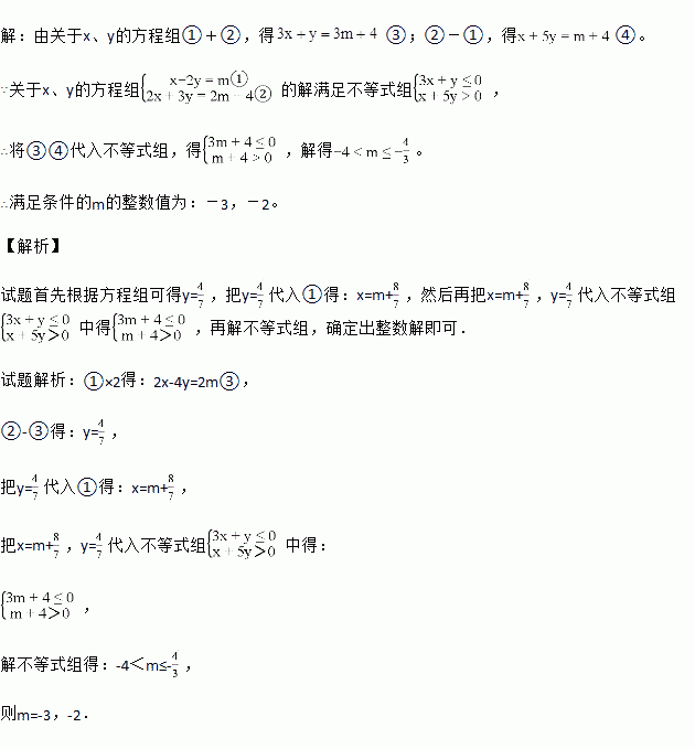 已知关于x、y的方程组的解满足不等式组。求满足条件的m的整数值。