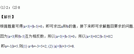 已知|a+3|和|b-5|互为相反数,求:(1) a+b的值; (2) |a|+|b|的值.
