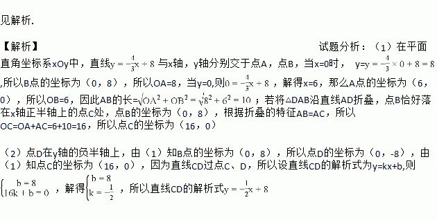 x+8与x轴,y轴分别交于点A,点B,点D在y轴的负半轴上,若将△DAB沿直线AD折叠,点B恰好落在x轴正半轴上的点C处.