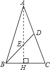 分析:(1)作等腰三角形底边上的高AH并根据勾股定理求出,与BD交点为E,则E是三角形的重心,再根据三角形重心的性质求出EH,∠DBC的正切值即可求出.