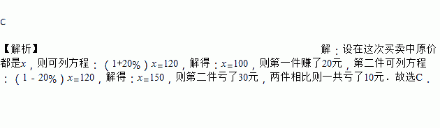 某商贩同时以120元卖出两双皮鞋,其中一双亏本,另一双盈利![]()