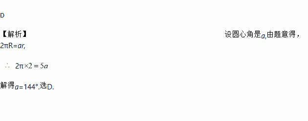 若半径为5cm的一段弧长等于半径为2cm的圆的周长,则这段弧所对的圆心角为( )