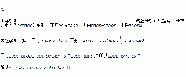如图,∠AOB=∠COD=90°,OC平分∠AOB,∠BOD=3∠DOE.试求∠COE的度数.