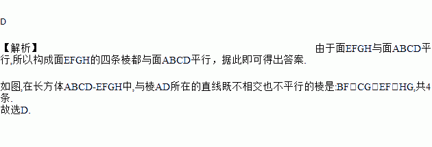如图,在长方体ABCD﹣EFGH中,与棱AD所在的直线既不相交也不平行的棱共有( )