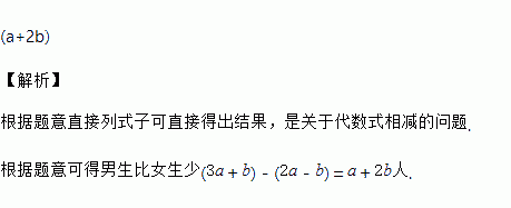 七(1)班有(2a-b)个男生和(3a+b)个女生,则男生比女生少________________人.